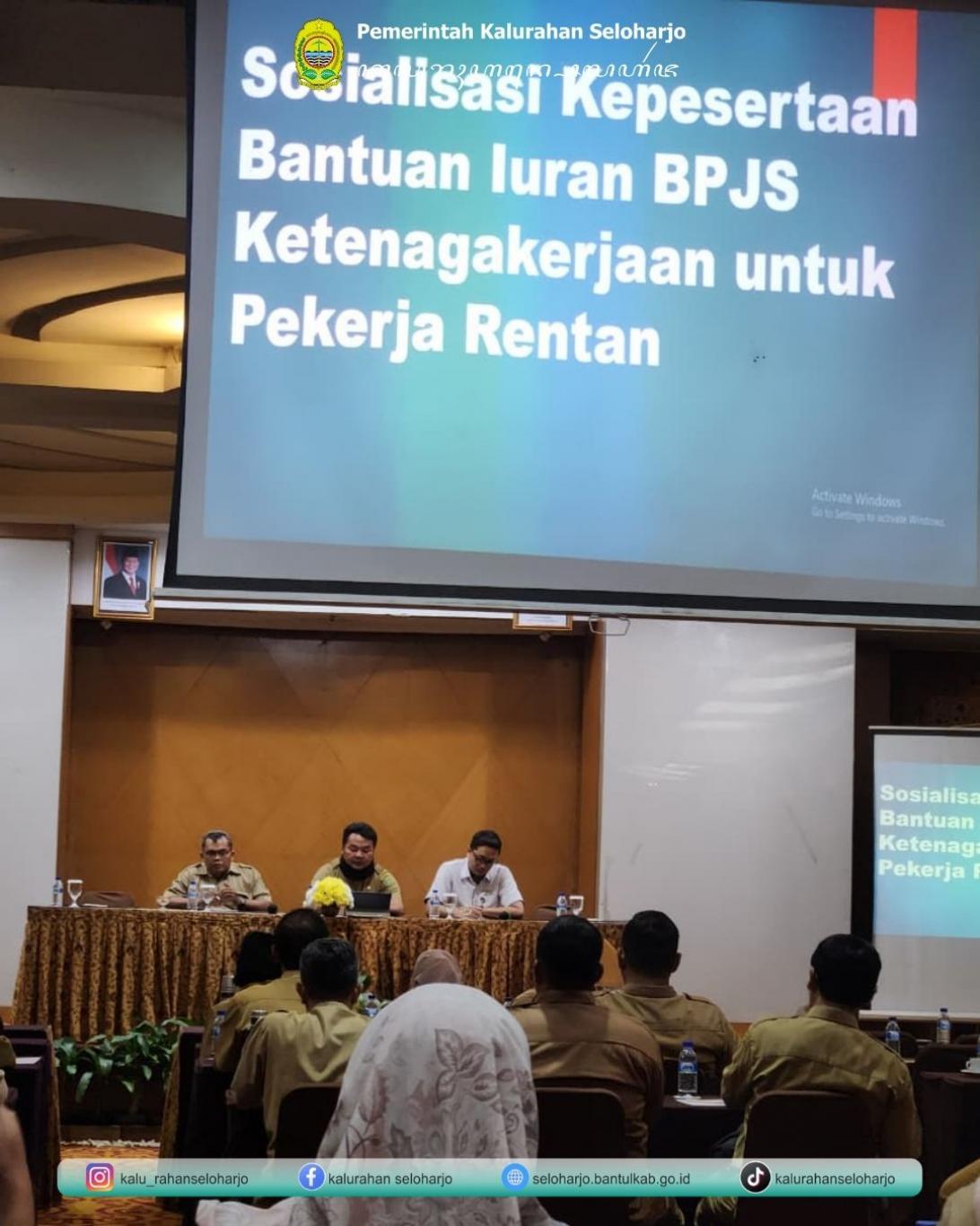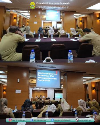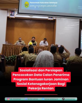 Seloharjo- Carik Kalurahan Seloharjo menghadiri Sosialisasi dan Persiapan Pencocockan Data Calon Penerima Program Bantuan Iuran Jaminan Sosial Ketenagakerjaan Bagi Pekerja Rentan pada Senin, 29 September 2025 di Hotel Ros-In (Jl. Ringroad Selatan, Druwo, Bangunharjo, Kec. Sewon, Kabupaten Bantul, Daerah Istimewa Yogyakarta). Dalam proses penentuan data calon penerima program ini, BPJS Ketenagakerjaan dan instansi terkait berusaha untuk memastikan bahwa bantuan iuran tepat sasaran dan diterima oleh pekerja rentan yang membutuhkan perlindungan jaminan sosial ketenagakerjaan.