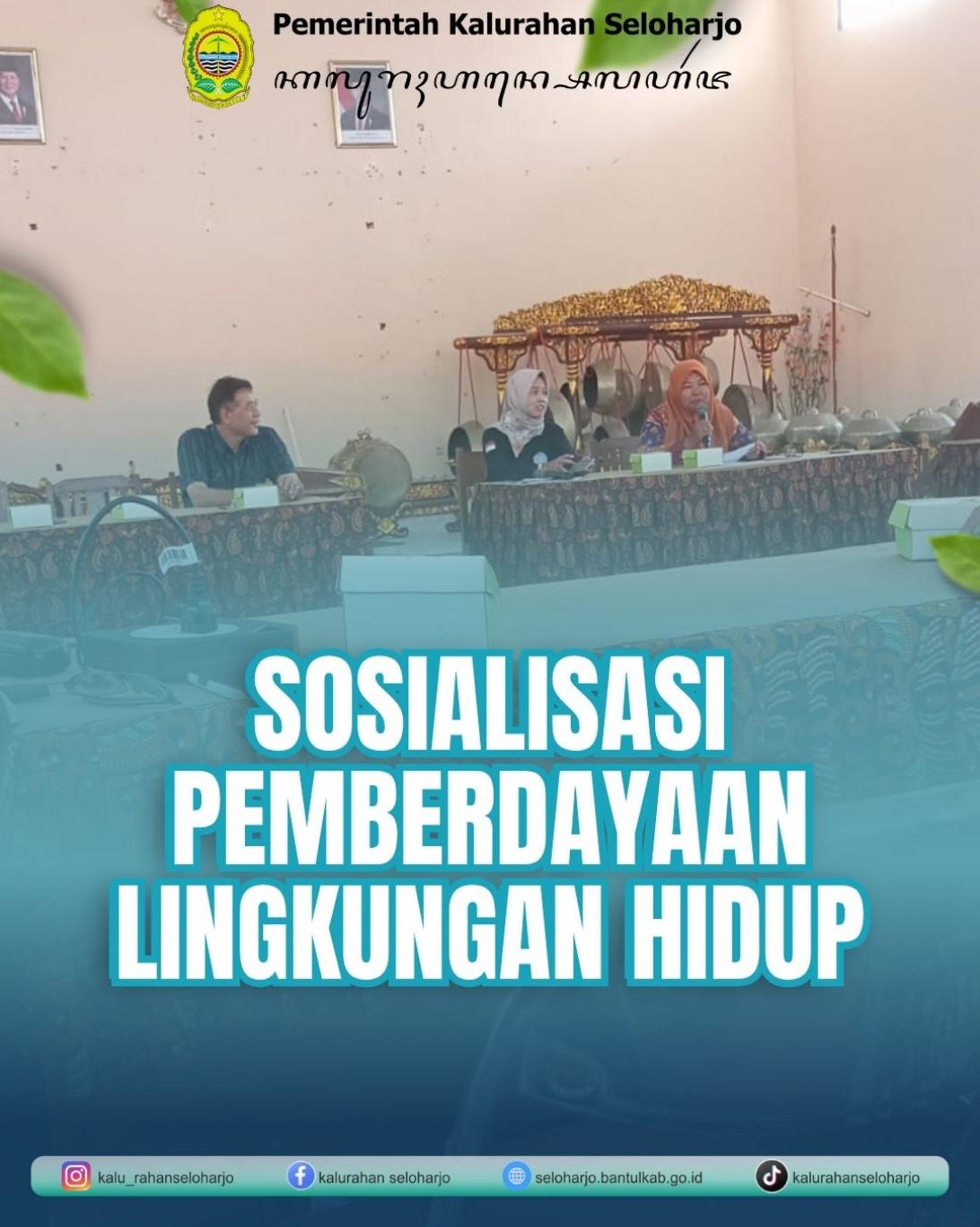 Sabtu, 11 Oktober 2025 Dinas Lingkungan Hidup Kabupaten Bantul menyelenggarakan Sosialisasi Pemberdayaan Lingkungan Hidup di Aula Kalurahan Seloharjo. Acara tersebut menghadirkan PKK Kalurahan Seloharjo sebagai peserta sosialisasi. PKK Kalurahan Seloharjo sangat antusias mengikuti sosialisasi tersebut. Acara tersebut sebagai wujud keiikutsertaan PKK dalam mewujudkan program ketahanan pangan dengan memanfaatkan lahan kosong.