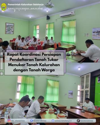 Seloharjo- Jagabaya Seloharjo menghadiri Rapat Koordinasi Persiapan Pendaftaran Tanah Tukar Menukar Tanah Kalurahan dengan Tanah Warga pada Rabu, 22 Oktober 2025 di Ruang Rapat Dinas Pertanahan dan Tata Ruang Kabupaten Bantul. Kegiatan ini bertujuan untuk memastikan proses tukar menukar tanah sesuai dengan peraturan perundang-undangan yang berlaku dan mengkoordinasikan dengan instansi terkait untuk memastikan proses berjalan lancar.