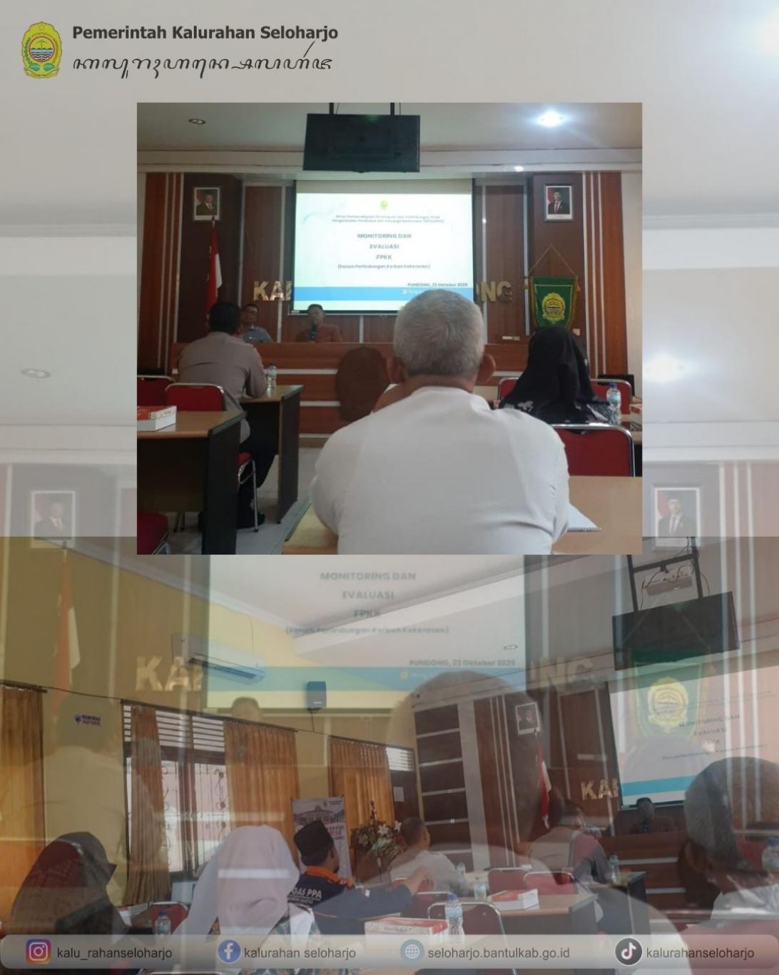 Seloharjo- Kamituwa Seloharjo menghadiri Monitoring dan Evaluasi FPKK (Forum Perlindungan Korban Kekerasan) pada Rabu, 22 Oktober 2025 di Aula Kapanewon Pundong. Kegiatan ini bertujuan untuk meningkatkan partisipasi masyarakat dalam upaya pencegahan dan penanganan kekerasan.