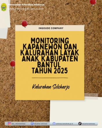 Seloharjo- Kamituwa Seloharjo menghadiri Monitoring Kapanewon dan Kalurahan Layak Anak Kabupaten Bantul Tahun 2025 pada Senin, 27 Oktober 2025 di Aula Gedung Mandala Saba. Kegiatan ini bertujuan untuk menilai sejauh mana sebuah wilayah telah mengintegrasikan hak dan perlindungan anak ke dalam kebijakan, program, dan kegiatan di tingkat Kapanewon dan Kalurahan. Proses ini melibatkan penilaian pemenuhan hak anak mulai dari lingkungan fisik, kebijakan, program, hingga partisipasi masyarakat.