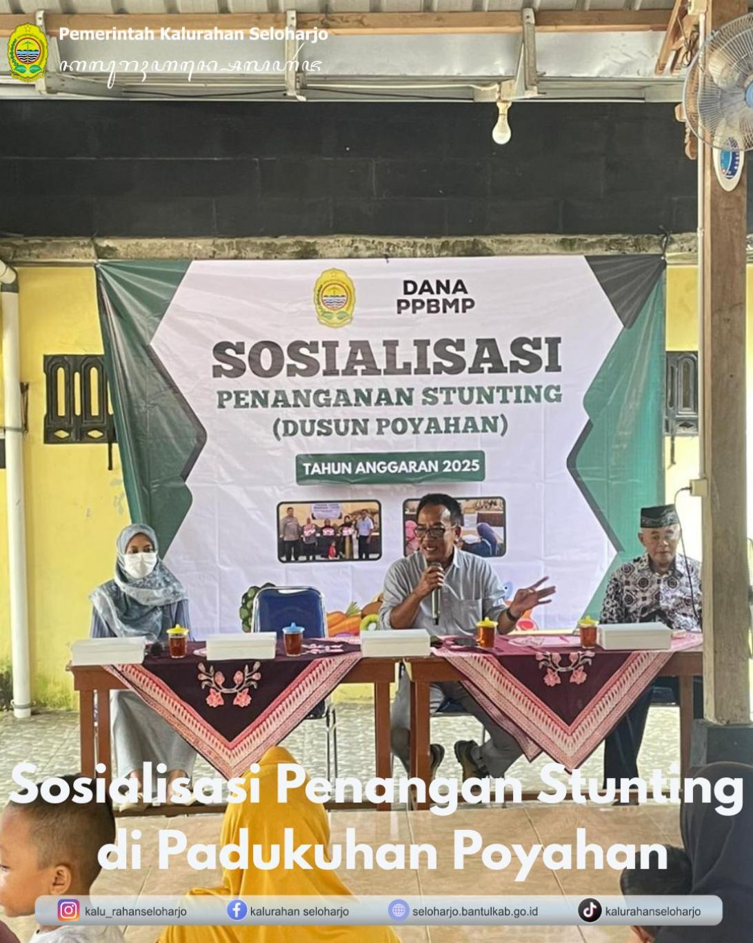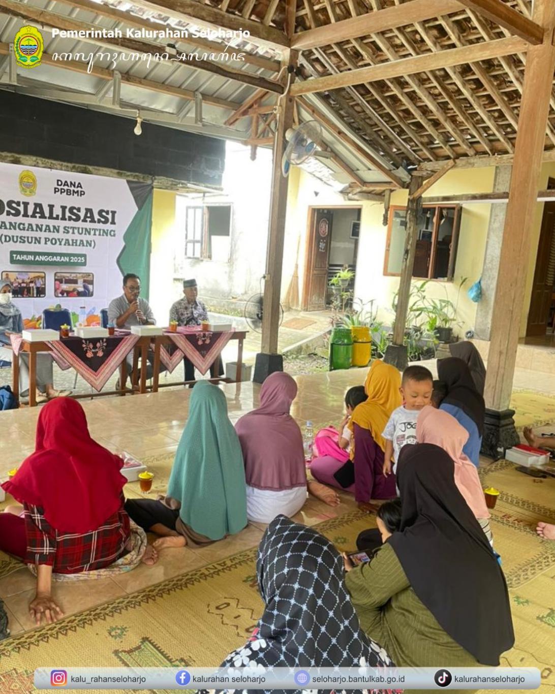 Seloharjo- Pemerintah Kalurahan Seloharjo menyelenggarakan Sosialisasi Penanganan Stunting di Padukuhan Seloharjo pada Selasa, 04 November 2025 di Padukuahan Poyahan yang turut dihadiri kamituwa Seloharjo dan Puskesmas kapanewon Pundong. Kegiatan ini bertujuan untuk meningkatkan kesadaran masyarakat tentang pentingnya pencegahan stunting dalam rangka menciptakan generasi muda yang sehat dan berkualitas.