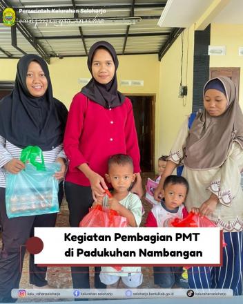 Seloharjo- Pemerintah Kalurahan Seloharjo menyelenggarakan KegaiatnPembagian PMT di Padukuhan Nambangan pada Minggu, 02 November 2025 di Padukuhan Nambangan yang turut dihadiri oleh Kamituwa Seloharjo, Puskesmas Kapanewon Pundong bersama tim Posyandu Seloharjo. Kegiatan ini bertujuan untuk meningkatkan kualitas kesehatan para balita stunting dan bumil, karena saat ini stunting harus segera teratasi, dengan adanya upaya pemberian PMT dari kalurahan maka diharapkan bisa memacu perkembangan tumbuh kembang anak dan dapat di masukan dalam catatan sesuai di buku KIA anak, diharapkan kesehatan anak bisa terjaga sehingga stuting tidak akan ada lagi di Kalurahan Seloharjo.