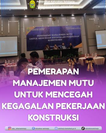 Seloharjo- Ulu-ulu Seloharjo menghadiri Pemerapan Manajemen Mutu untuk Mencegah Kegagalan Pekerjaan Konstruksi pada Kamis, 06 November 2025 di Ballroom Burza Hotel. Rencana mutu pekerjaan dan konstruksi menjadi pedoman bagi setiap tahapan proyek, mulai dari perencanaan, pelaksanaan, hingga pengawasan. Rencana ini mendefinisikan standar kualitas yang ingin dicapai, menetapkan metode dan prosedur kerja, serta mengidentifikasi potensi risiko yang dapat menghambat kualitas. Rencana mutu pekerjaan dan konstruksi menjadi kunci utama untuk membangun proyek yang berkualitas, tepat waktu, dan sesuai anggaran.