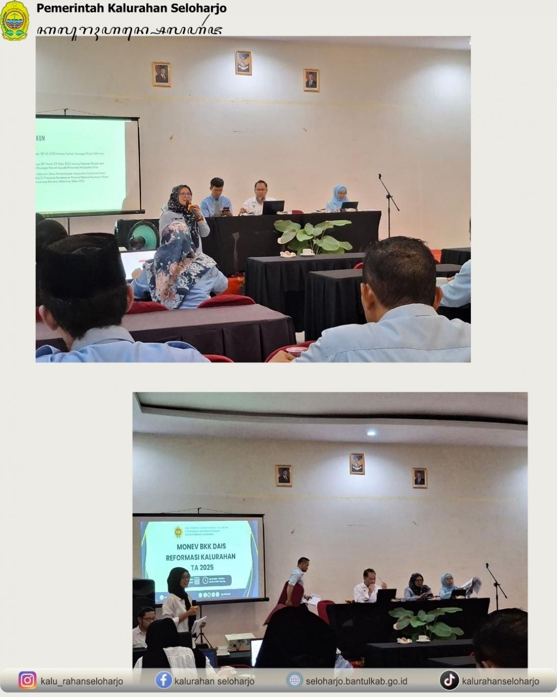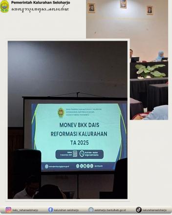 Seloharjo- Pangripta Seloharjo menghadiri Rapat Monitoring Evaluasi BKK DAIS Reformasi Kalurahan Tahun 2025 pada Selasa, 11 November 2025 di Jl. Ringroad Selatan No 19, Glugo, Panggungharjo, Kapanewon Sewon, Bantul. Kegiatan ini bertujuan untuk mengoptimalisasi Pengelolaan BKK Dana Keistimewaan Reformasi Kalurahan Tahun 2025 dari Aspek adminstrasi, penggunaan Dana, pencapaian target dan hasil, serta dampak dan manfaat.