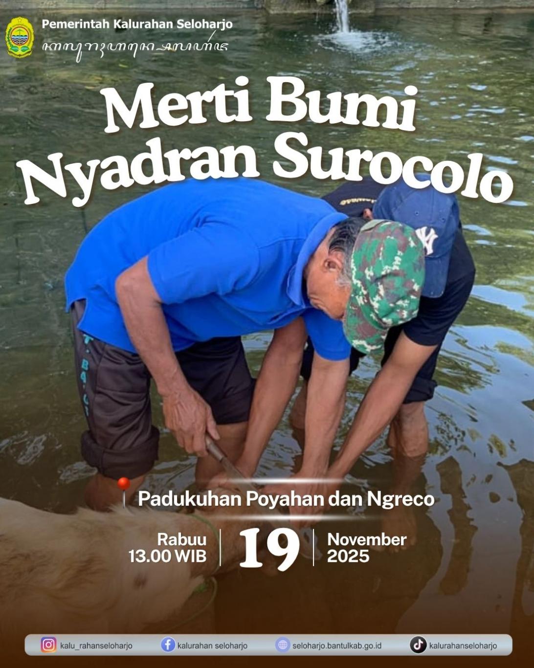 Seloharjo- Wisata Goa Jepang yang terletak di dua Padukuhan yaitu Poyahan dan Ngreco telah menyelenggarakan Merti Bumi Nyadran pada Rabu Kliwon, 19 November 2025 yang turut dihadiri oleh Ulu-ulu Seloharjo, Kamituwa Seloharjo dan Bhabinkamtibmas Seloharjo. Merti bumi nyadran merupakan tradisi yang dilakukan oleh masyarakat dalam satu tahun sekali untuk mengungkapkan rasa syukur dan mempererat tali silaturahmi. Kegiatan tradisi tersebut ditandai dengan penyembelihan kambing jantan yang sehat dan berumur, serta dimasak dengan cara "krawon" dalam sebutan masyarakat setempat atau daging tersebut di campur parutan kelapa lalu disajikan kenduri berwujud tumpengan hasil bumi, doa bersama lalu di bagikan kepada masyarakat sekitar dan anak anak. Kegiatan ini bertujuan untuk mengankat potensi seni lokal masyarakat setempat, sehingga dapat meningkatnya pendapatan ekonomi bagi masyarakat kampung surocolo tersebut.