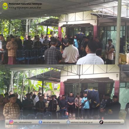 Seloharjo- Innalilahi wa innailaihi rojiun telah meninggal dunia Almarhum Nyai Rujilah di Padukuhan Dermojurang. Pemerintah Kalurahan Seloharjo mengucapkan turut berbelasungkawa yang sedalam-dalamnya atas meninggalnya Almarhum Nyai Rujilah di Padukuhan Dermojurang pada Rabu, 26 November 2025. Semoga Almarhum Husnul Khotimah, Diampuni segala khilaf dan dosanya serta di tempatkan di surga Allah SWT. Penyerahan Akta Kematian Almarhum Nyai Rujilah oleh Pamong Seloharjo kepada ahli waris Almarhum Nyai Rujilah warga Padukuhan Dermojurang di rumah duka.