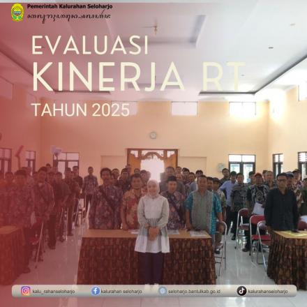 Seloharjo- Pemerintah Kalurahan Seloharjo menyelenggarakan Evaluasi Kinerja RT Tahun 2025 pada Rabu, 26 November 2025 di Aula Kalurahan Seloharjo yang di pimpin oleh Jagabaya Seloharjo. Kegiatan ini merupakan wujud terimakasih untuk seluruh Ketua RT se Padukuhan Seloharjo yang telah mengabdi kepada masyarakat dengan penuh sadar dan ikhlas memberikan pelayanan sepenuh hati.