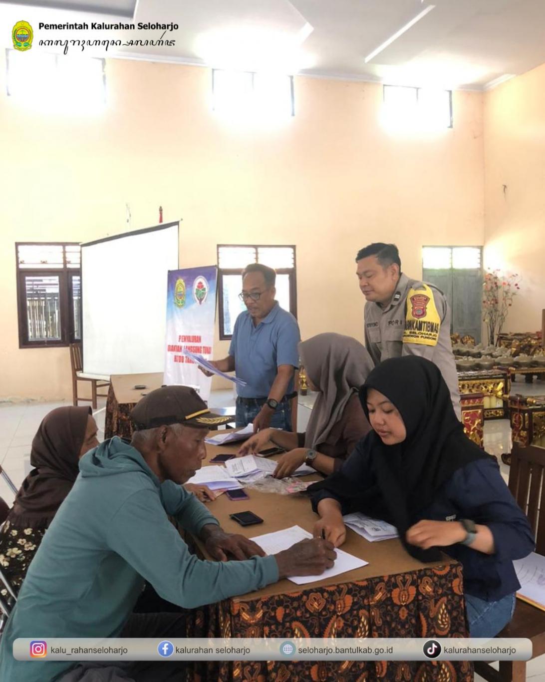 Seloharjo- Pemerintah Kalurahan Seloharjo telah menyalurkan Bantuan Langsung Tunai (BLT) Pada Jum’at, 05 Desember 2025 pukul 13.00 WIB di Aula Kalurahan Seloharjo. Keluarga Penerima Manfaat (KPM) yang menerima bantuan berjumlah 47 KPM dan disalurkan selama 1 Bulan. Penyaluran Bantuan Langsung Tunai (BLT) Kalurahan Seloharjo berjalan dengan lancar, tertib dan kondusif.