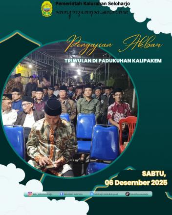Sabtu, 06 Desember 2025 Pamong Kalurahan Seloharjo menghadiri Pengajian Akbar Triwulan yang diadakan oleh Organisasi Muhammadiyah yang ada di Kalurahan Seloharjo. Pengajian yang diselenggarakan di padukuhan Kalipakem ini menghadirkan ustad Sutarjo. Dengan mengusung tema Korupsi, dalam pandangan islam korupsi dikategorikan sebagai perbuatan haram yang wajib diberantas melalui taubat, pengembalian harta, serta sanksi hukum. Jamaah yang hadir sangat menikmati suguhan ilmu yang disampaikan oleh ustad Sutarjo.