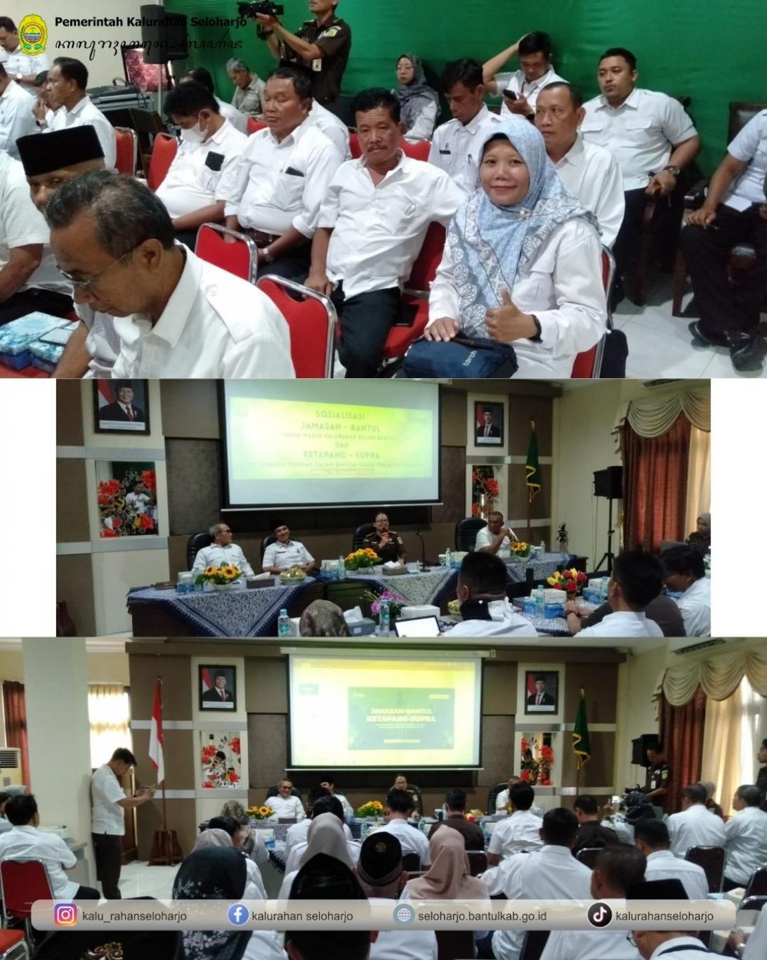 Seloharjo- Lurah Seloharjo menghadiri Sosialisasi Jamasan (Jaksa Masuk Kalurahan) Kabupaten Bantul pada Rabu, 14 Januari 2026. Kegiatan ini bertujuan untuk upaya meningkatkan pemahaman dan pengawasan pengelolaan keuangan Desa dan memberikan pendampingan hukum, pencegahan, serta deteksi dini terhadap potensi penyalahgunaan anggaran di tingkat Kalurahan.