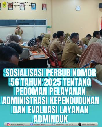 - Sosialisasi Perbub Nomor 56 Tahun 2025 Tentang Pedoman Pelayanan Administrasi Kependudukan dan Evalu