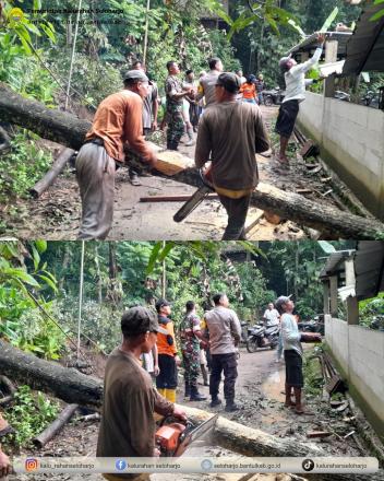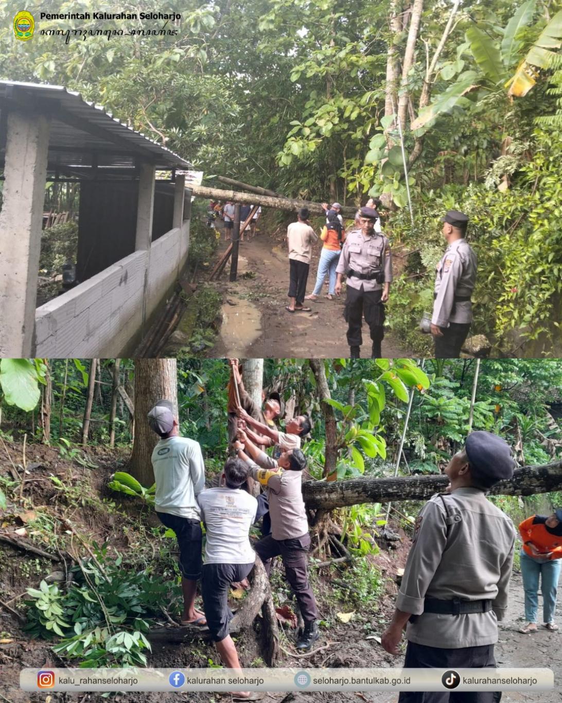 Seloharjo- Bencana pohon tumbang ini kembali melanda wilayah Kalurahan Seloharjo, yang terjadi pada Kamis, 29 Januari 2026 pukul 17.00 WIB. Allhamdulilah, tidak ada korban jiwa dalam peristiwa ini, hanya saja terdapat bangunan rumah dan teras milik Bapak Ngatmiran yang mengalami kerusakan akibat peristiwa ini. Kerusakan rumah dan teras milik Bapak Ngatmiran alamat Padukuhan Kalinampu RT 004. Tim FPRB Kalurahan Seloharjo dibantu oleh Bhabinkamtibmas, Bhabinsa Kalurahan Seloharjo hadir untuk mengevakuasi pohon tumbang tersebut.