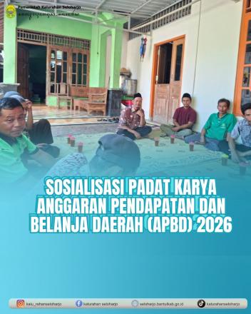 Seloharjo- Ulu-ulu Seloharjo menghadiri Sosialisasi Padat Karya Anggaran Pendapatan dan Belanja Daerah (APBD) 2026 pada Senin, 02 Februari 2026 di Padukuhan Soka yang dihadiri oleh DPRD Kabupaten Bantul, Dinas Tenaga Kerja dan Transmigrasi Kabupaten Bantul, Plt Panewu Anom Kapanewon Pundong dan masyarakat Padukuhan Soka. Kegiatan ini bertujuan untuk memberikan pemahaman kepada masyarakat tentang program padat karya infrastruktur dan manfaat yang akan diberikan bagi warga Padukuhan Soka baik dari segi fasilitas maupun hubungan sosial.