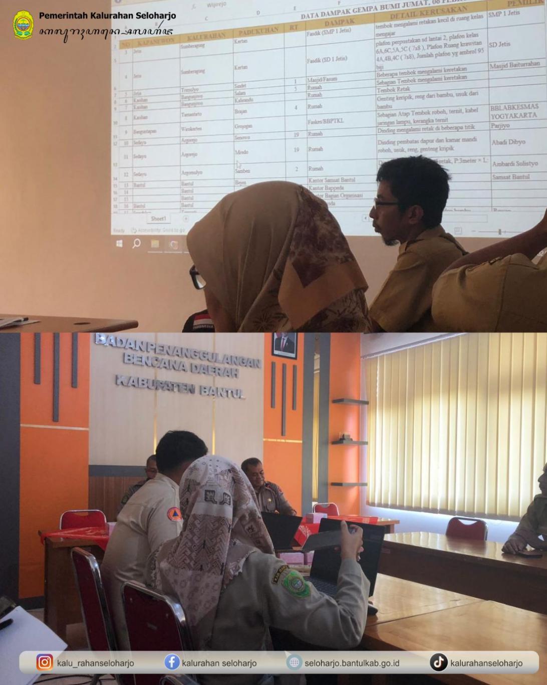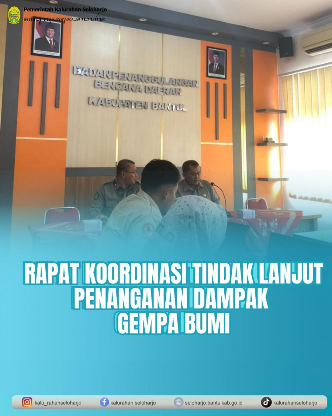 Seloharjo- Staff Jagabaya Seloharjo menghadiri Rapat Koordinasi Tindak Lanjut Penanganan Dampak Gempa Bumi pada Senin, 09 Februari 2026 di Ruang Rapat Lantai 2 BPBD Kabupaten Bantul. Kegiatan ini bertujuan untuk meningkatkan koordinasi dan penanganan dampak gempa bumi, serta meningkatkan kesadaran masyarakat tentang pentingnya kesiapsiagaan dan penanganan bencana.
