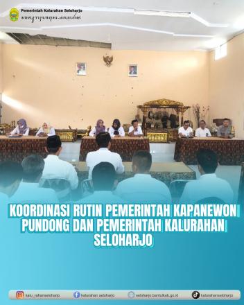 Seloharjo- Pemerintah Kalurahan Seloharjo menyelenggarakan Koordinasi Rutin bersama Panewu dan Jajaran Kepala Jawatan Kapanewon Pundong pada Rabu, 18 Februari 2026 di Aula Kaluarahan Seloharjo. Koordinasi ini membahas mengenai :